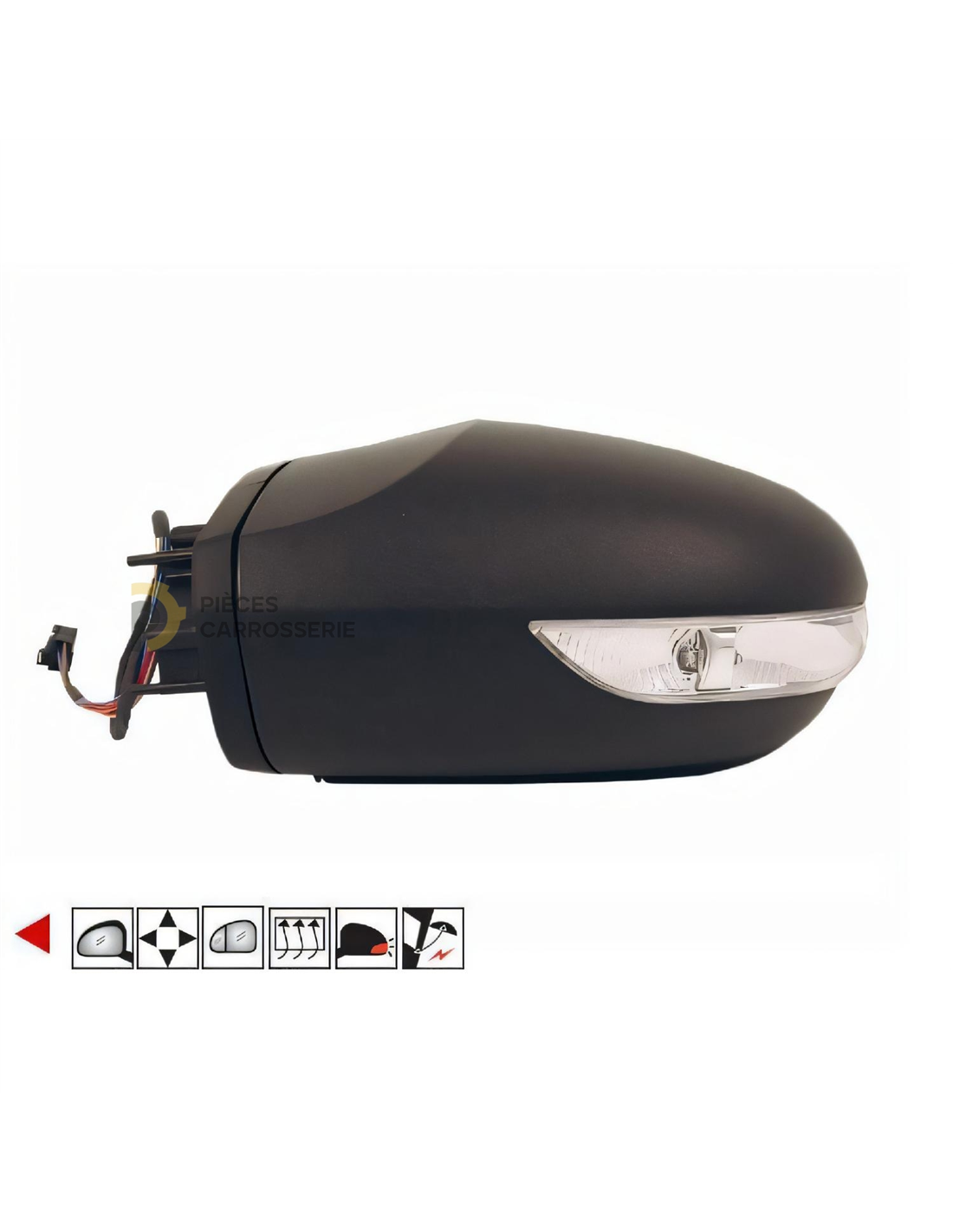 - Description : Coque à peindre, glace asphérique pour angle mort, feu clignotant intégré.