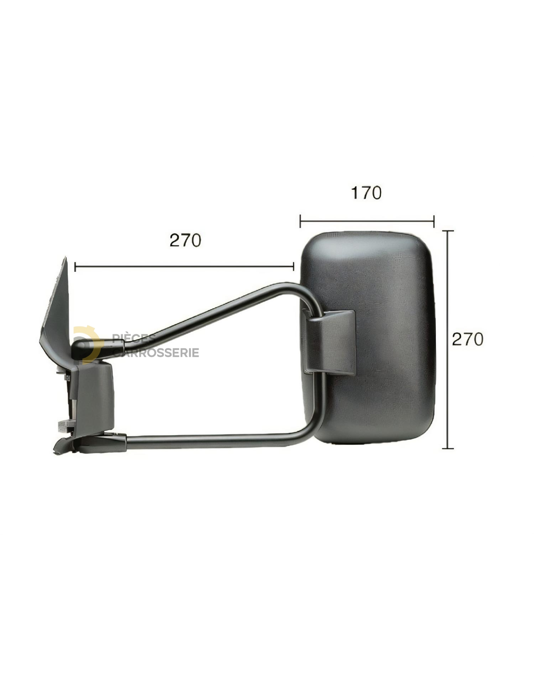 - Description : Rétroviseur complet avec coque noire et glace convexe, réglage extérieur manuel